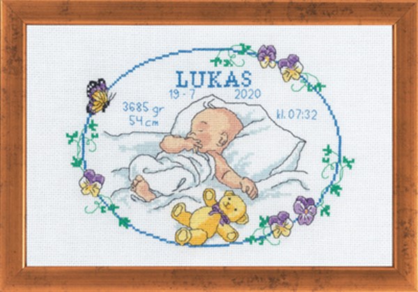 Broderet med korssting, stikkesting (sy med delt garn 2/6, korssting, stikkesting 1/6)