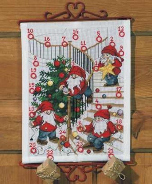 Hvid Aida 14''/5,4 med Mouline broderigarn incl. 24 stk. røde ringe - Str. 30 x 39 cm