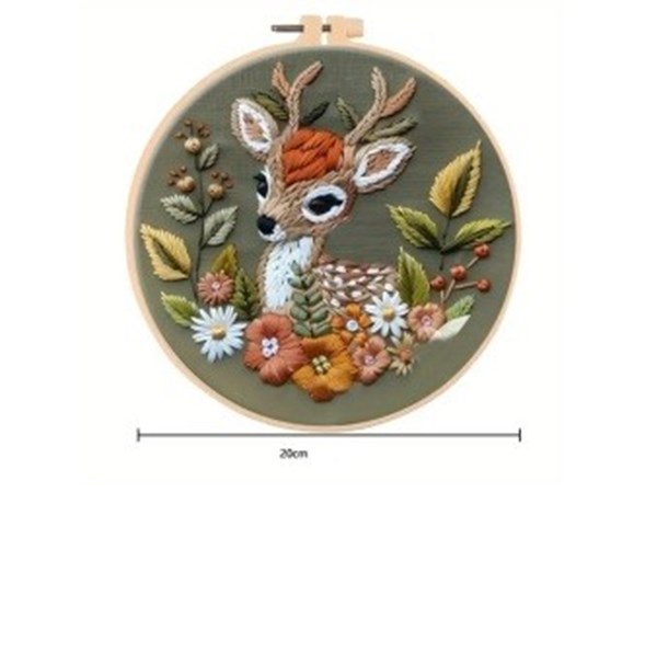 Pakken indeholder: Påtrykt stof, tråd, nåle, opsprætter,nåletræder og broderiramme