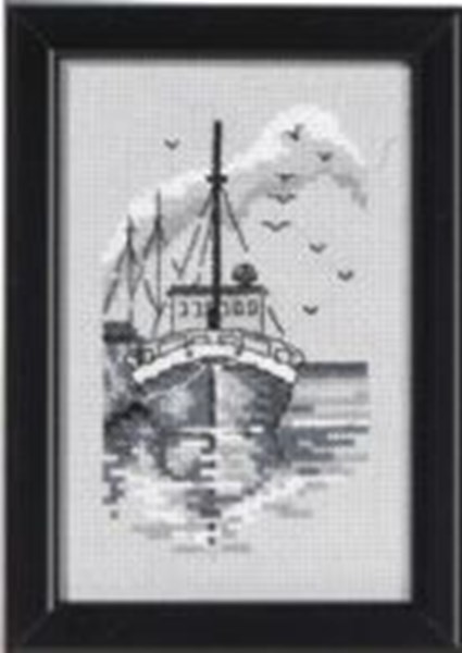 Indhold: Lysegrå Aida 5,4 tr/cm - brodergarn - nål - mønster. Færdig mål 9x14 cm