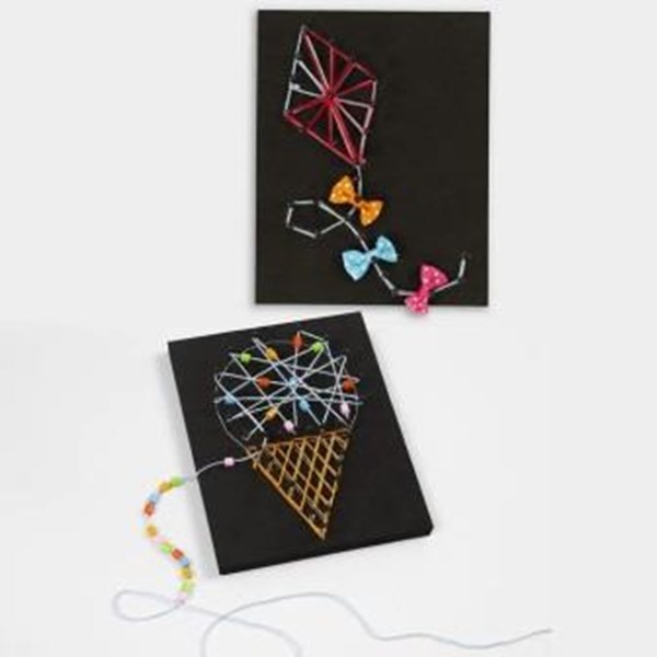 Kraftige mosgummiplader til String Art. Isæt knappenåle og træk/sno garn mellem punkterne
