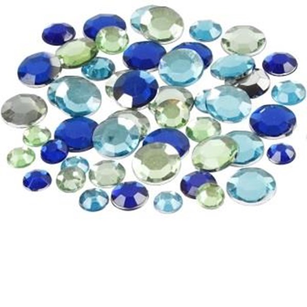 Sortiment af rhinsten i 3 forskellige størrelser med facetslebne kanter og flad bagside.