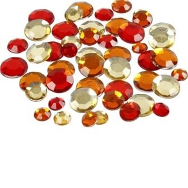 Sortiment af rhinsten i 3 forskellige størrelser med facetslebne kanter og flad bagside.