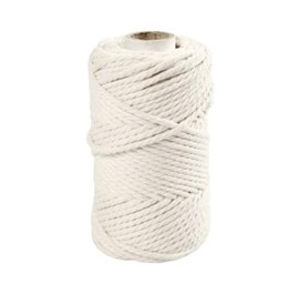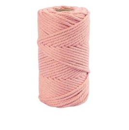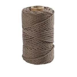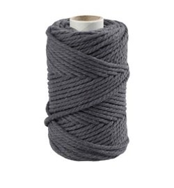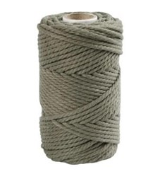 Macramé-garn i 3-tvundet/tvistet kvalitet i 80% genanvendt bomuld og 20% polyester. Denne kraftigere macramé-snor er oplagt til knytning af større projekter som vægophæng, blomsterampler, indkøbsnet og lign
