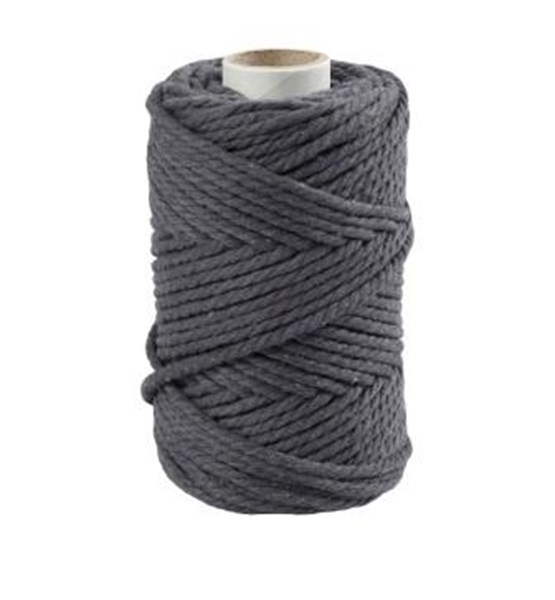 Macramé-garn i 3-tvundet/tvistet kvalitet i 80% genanvendt bomuld og 20% polyester. Denne kraftigere macramé-snor er oplagt til knytning af større projekter som vægophæng, blomsterampler, indkøbsnet og lign.