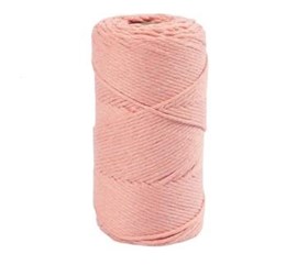 Macramé garn i enkelt tvistet/tvundet kvalitet i 80% genanvendt bomuld og 20% polyester. Oplagt til knytning af mindre projekter som drømmefangere, øreringe, nøgleringe og lign. Enkelt tvistet macramé snor er ideel til projekter, hvor snoren skal 'børstes' som effekt.