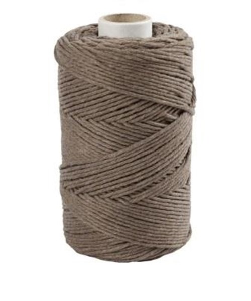 Macramé garn i enkelt tvistet/tvundet kvalitet i 80% genanvendt bomuld og 20% polyester. Oplagt til knytning af mindre projekter som drømmefangere, øreringe, nøgleringe og lign. Enkelt tvistet macramé snor er ideel til projekter, hvor snoren skal 'børstes' som effekt