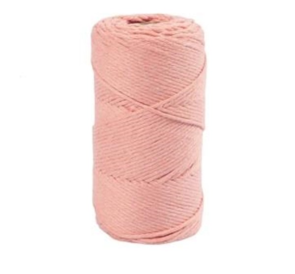 Macramé garn i enkelt tvistet/tvundet kvalitet i 80% genanvendt bomuld og 20% polyester. Oplagt til knytning af mindre projekter som drømmefangere, øreringe, nøgleringe og lign. Enkelt tvistet macramé snor er ideel til projekter, hvor snoren skal 'børstes' som effekt