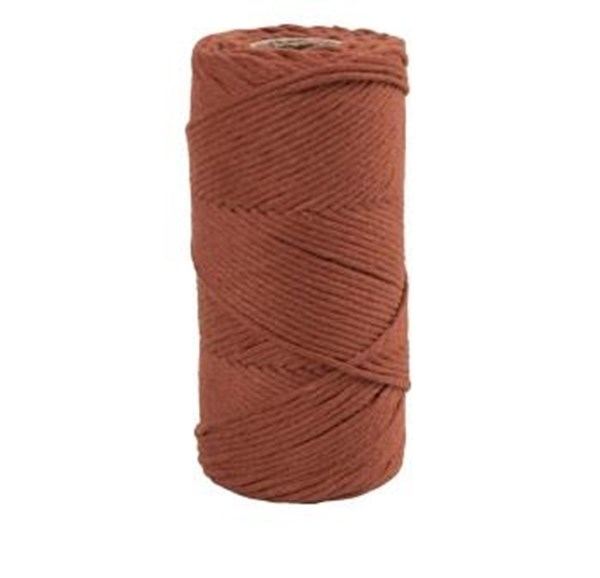 Macramé garn i enkelt tvistet/tvundet kvalitet i 80% genanvendt bomuld og 20% polyester. Oplagt til knytning af mindre projekter som drømmefangere, øreringe, nøgleringe og lign. Enkelt tvistet macramé snor er ideel til projekter, hvor snoren skal 'børstes' som effekt