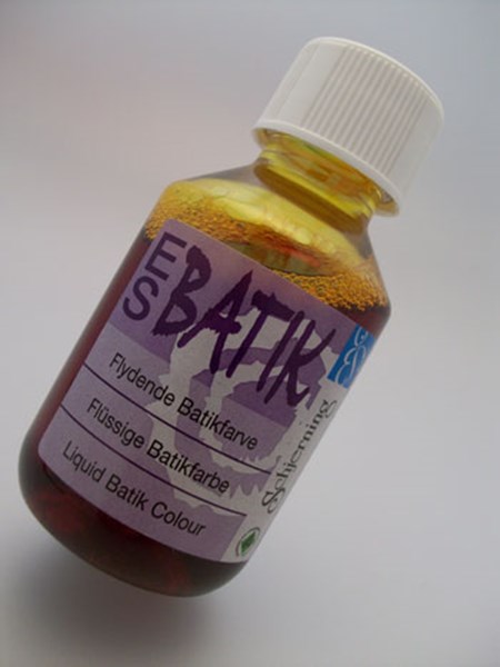 Flydende batikfarve fra Schjerning - har gode lys- og vaskægtheder, og er velegnet til appreturfrit bomuld, 100 ml. rækker til fuld indfarvning af 660 g. tørt hvidt bomuldstof (sort farve 330 g. stof) Se udførlig brugervejlednig på Fixermiddel til ES batik