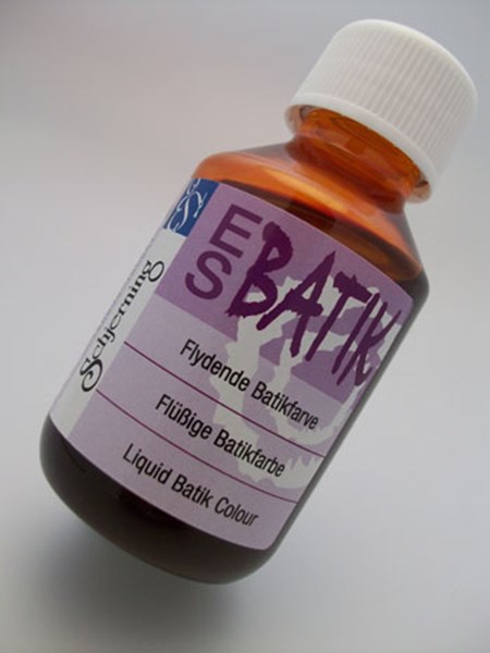 Flydende batikfarve fra Schjerning - har gode lys- og vaskægtheder, og er velegnet til appreturfrit bomuld, 100 ml. rækker til fuld indfarvning af 660 g. tørt hvidt bomuldstof (sort farve 330 g. stof) Se udførlig brugervejlednig på Fixermiddel til ES batik