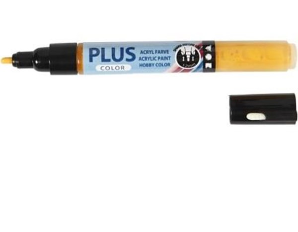 Vandbaseret, heldækkende tusch i meget høj kvalitet med pumpespids. Velegnet på alverdens overflader. Tørrer silkemat op og matcher tilsvarende farve i Plus Color hobbymalingsserien.