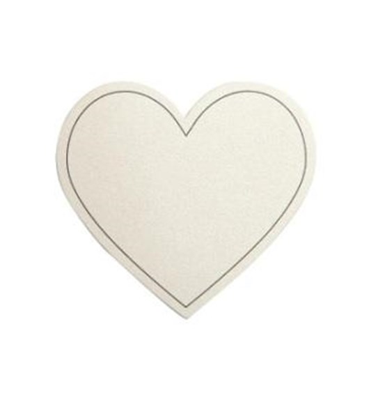 Udstanset hjerte af kraftigt karton med perlemorsoverflade.