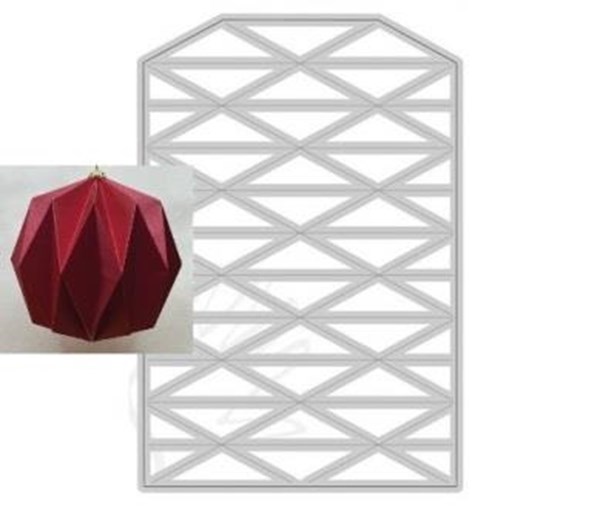 Den kæmpe foldede julekugle fra Dan Dies er en ny størrelse af vores populære julpynt (7885 og udgåede 7822). Denne gang er kuglen blevet endnu større, så den færdige kugle måler ca. Ø9,4 cm. Dien passer på standard A5 papir (og skæreplader), men du skal bruge 2 udskæringer for at lave julekuglen. Du kan finde mere information om hvordan kuglerne samles på www.danmorehobby.dk youTube video.