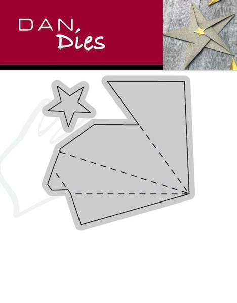 Den foldede stjerne fra Dan Dies kan bruges til at samle en flot stjerne med 3D effekt. Til hver stjerne skal bruges 5 dele. Den færdige stjerne måler ca. Ø10,5 cm. Brug f.eks. som pynt på kort, som ophæng eller juletræspynt.