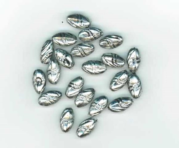 Oval plastperle med mønster - 13 mm Lang - Metallook - ca. 43 stk pr. pose