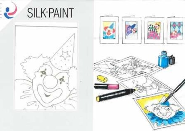 Indhold: 4 stk. ass.silke motiver klovne str. 15x10 cm + 4 stk. Passe-Partout kort