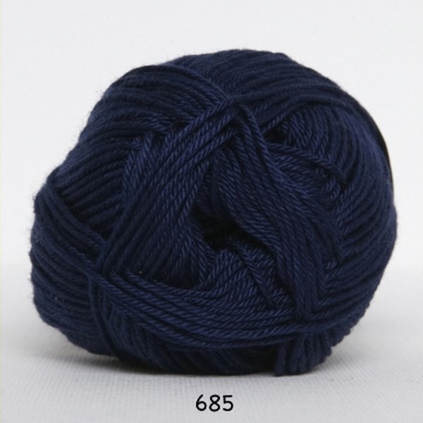 100% Merceriseret bomuld 8/4 - Pind 2½ - 3 - strikkefasthed 27m x 39p = 10x10 cm - 50 g. = 165 mtr