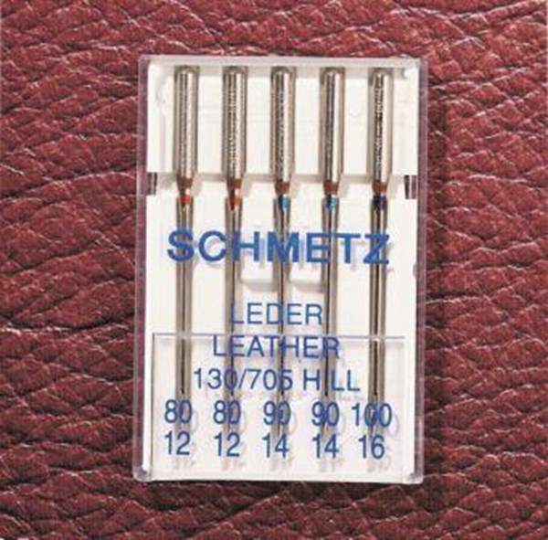 Schmetz Lædernål 130/705 H-LL. Sleben skarp trekantet spidsog en ekstra forstærket konstruktion sikrer optimal gennemtrængning i læder og skind. Kan ikke benyttes til tekstiler