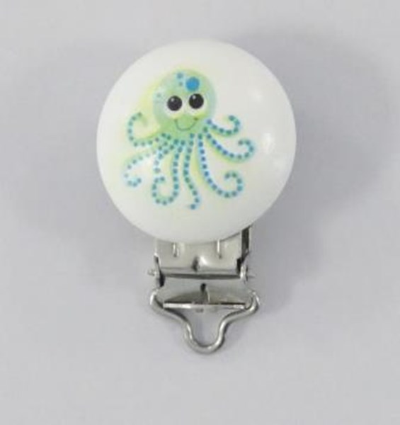 Træclips til at montage af suttebånd, metaldelene er nikkelfrie og rustfrie.
