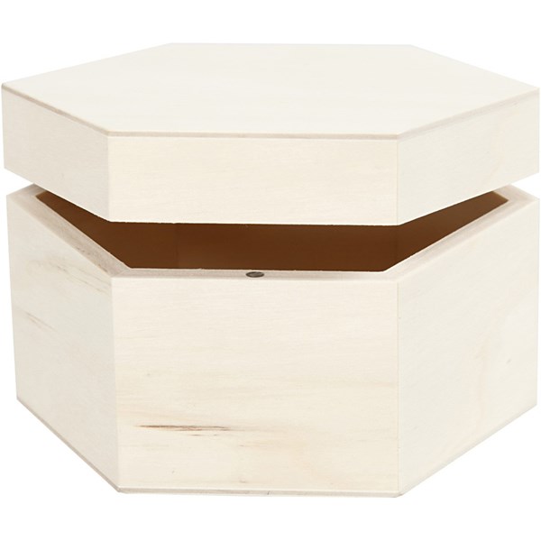 Sekskantet æske af lyst træ med magnetlås..