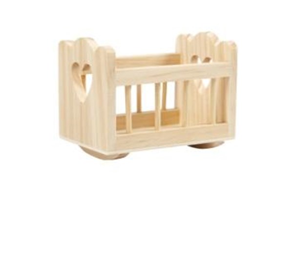 Vuggen dekoreres let med Plus Color hobbymaling, elbrænder, stempeltryk og lign.