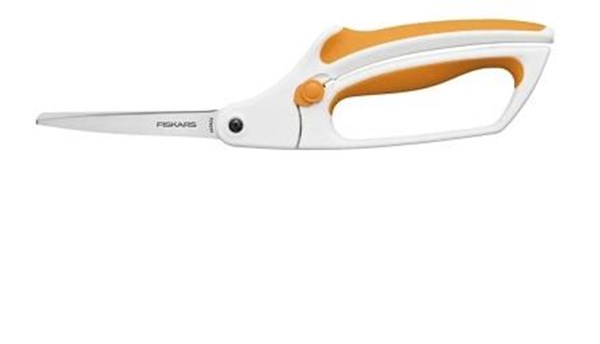 Softtouch universalsaks fra Fiskars. Fjedervirkning og Softouch® polstrede greb gør det lettere og rarere at klippe. Til lange klippearbejder (syning og kontor) - lange blade for en lang, flydende klippebevægelse. Ideel til præcis klipning af små patchworklapper, til at trimme sømbredder og klippe papir rent og fint (hardangerbroderi, knaphuller og de snævreste kroge). Højkvalitetsblade af rustfrit stål. Langvarig klippekvalitet. Bladenes skrue kan justeres for at forbedre klippekvaliteten. Til højre- og venstrehåndede.